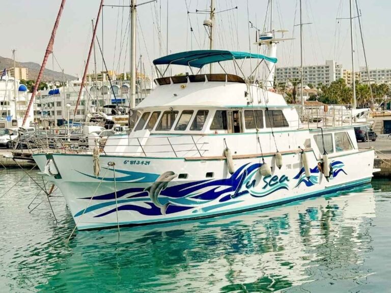 Descubre la Costa del Sol desde el mar a bordo de un exclusivo barco de 20 metros viviendo una aventura inolvidable. Navega en busca de delfines y fauna marina, sumérgete para hacer snorkel y siente la adrenalina de lanzarte al mar desde dos espectaculares toboganes de 20 pies situados desde la proa del barco al mar.